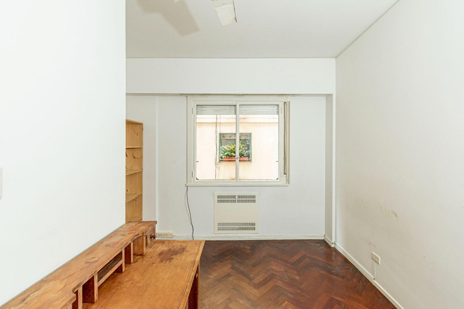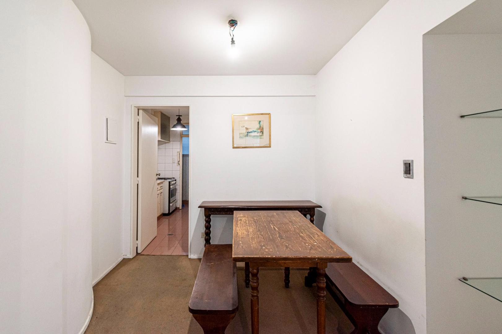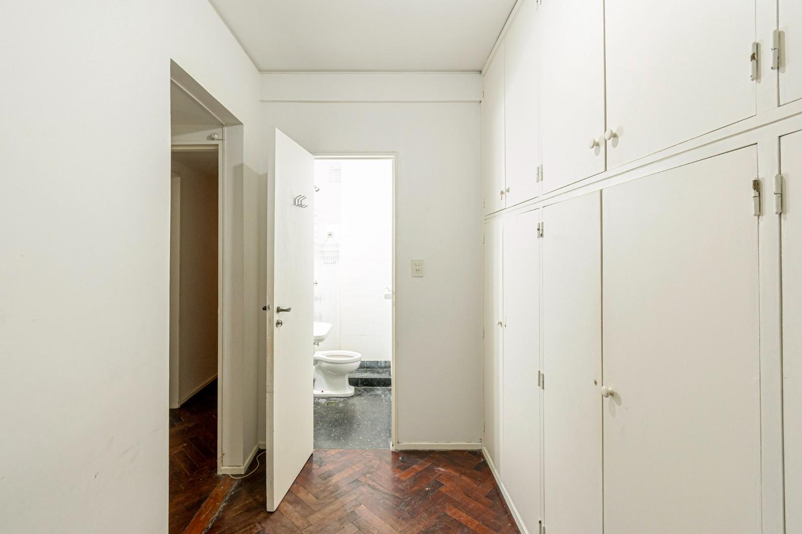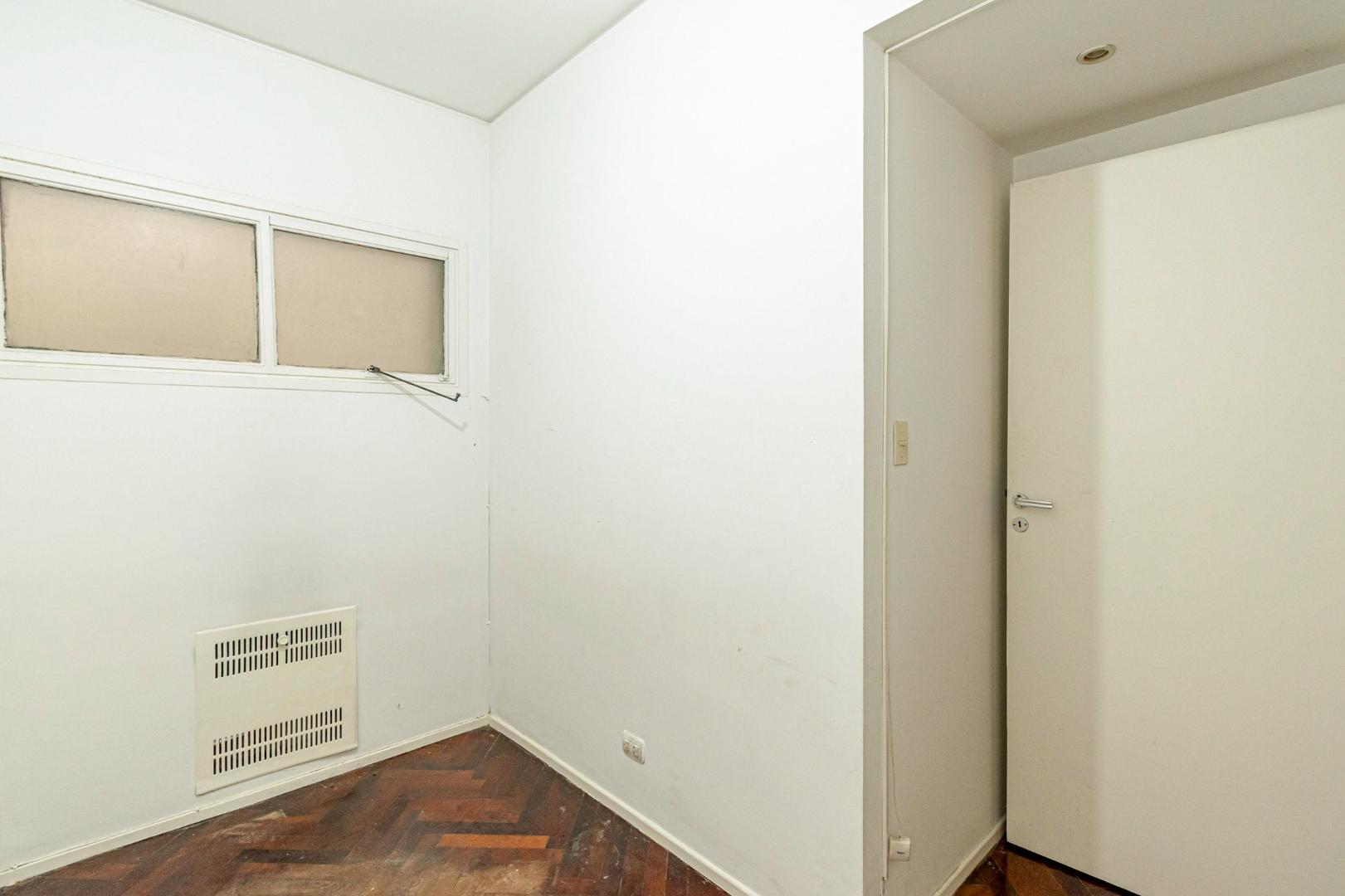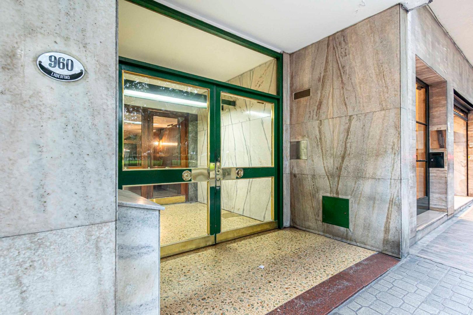El departamento se modificó incorporando la ante-cocina y transformándola en comedor anexada al Living y se cerró el acceso a la habitación de servicio por el lavadero, abriendo el acceso por el pasillo de los dormitorios siendo actualmente un escritorio o tercer dormitorio con un gran placard y un segundo baño con ducha. Las medidas aproximadas de los ambientes son Living 6,10 x 3,20 Comedor 2,50 x 2 Dorm 3,80 x 3,20 con placard, 2° dorm 3x3 con placar, hab serv o tercer dorm 3x2. El edificio es de muy buena categoría, tiene encargado permanente, ayudante y vigilancia todos los días las 24 hs. Tiene servicios centrales de calefacción y agua caliente. El estado general del departamento es muy bueno. Su ubicación es estratégica, frente a Plaza Libertad, a 1 y1/2 cuadra de Av. Santa Fé y 2 cuadras de Av. 9 de Julio con Metrobus y varios medios de transporte. Es una zona con bares, restaurantes, supermercados etc.
