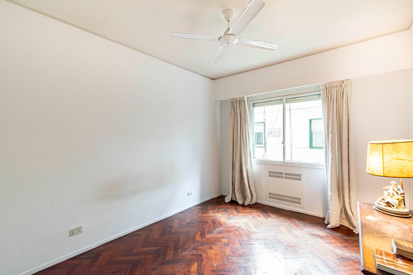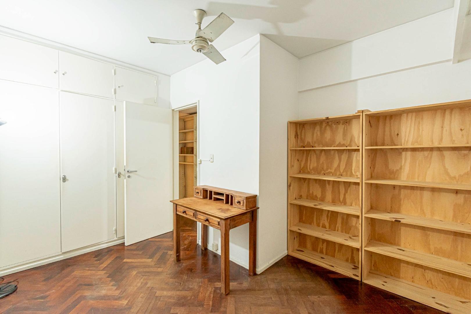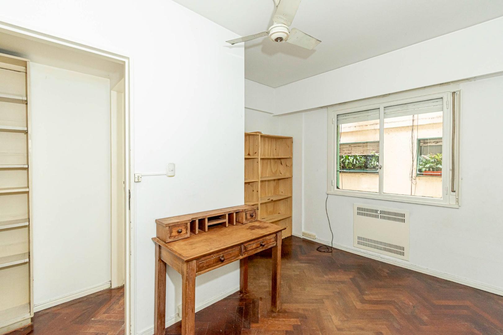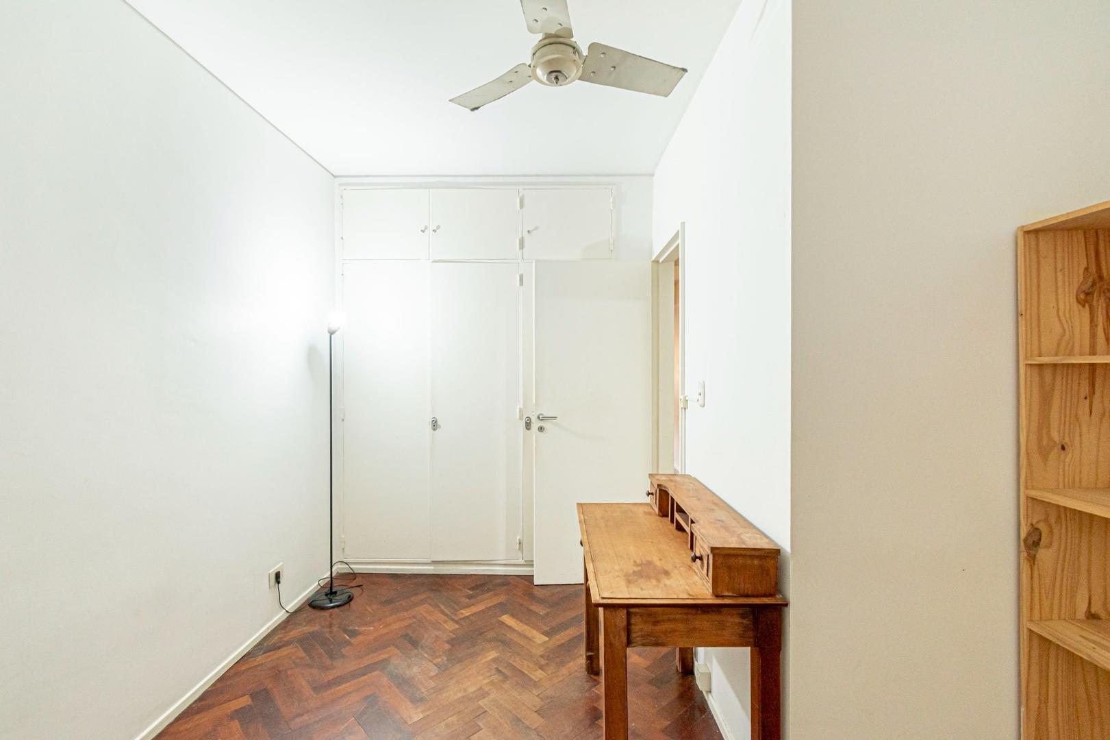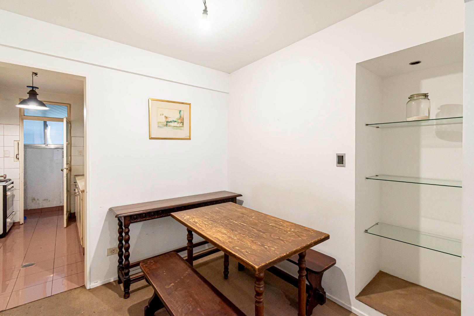 El departamento se modificó incorporando la ante-cocina y transformándola en comedor anexada al Living y se cerró el acceso a la habitación de servicio por el lavadero, abriendo el acceso por el pasillo de los dormitorios siendo actualmente un escritorio o tercer dormitorio con un gran placard y un segundo baño con ducha. Las medidas aproximadas de los ambientes son Living 6,10 x 3,20 Comedor 2,50 x 2 Dorm 3,80 x 3,20 con placard, 2° dorm 3x3 con placar, hab serv o tercer dorm 3x2. El edificio es de muy buena categoría, tiene encargado permanente, ayudante y vigilancia todos los días las 24 hs. Tiene servicios centrales de calefacción y agua caliente. El estado general del departamento es muy bueno. Su ubicación es estratégica, frente a Plaza Libertad, a 1 y1/2 cuadra de Av. Santa Fé y 2 cuadras de Av. 9 de Julio con Metrobus y varios medios de transporte. Es una zona con bares, restaurantes, supermercados etc.