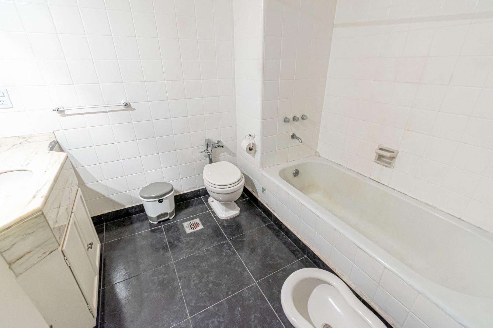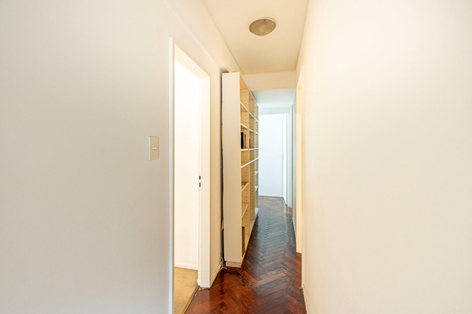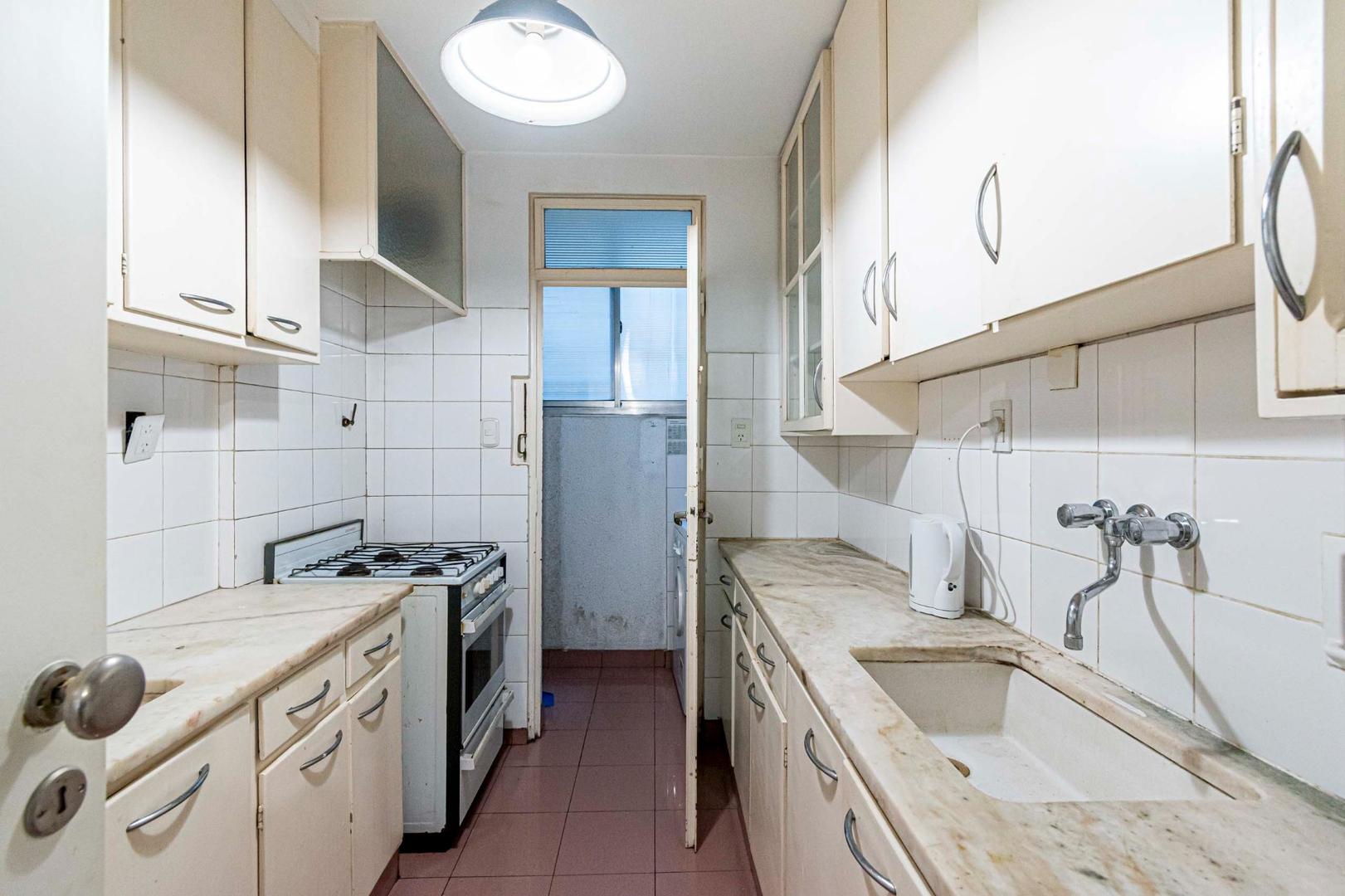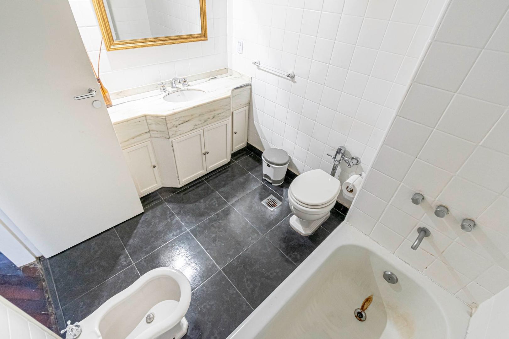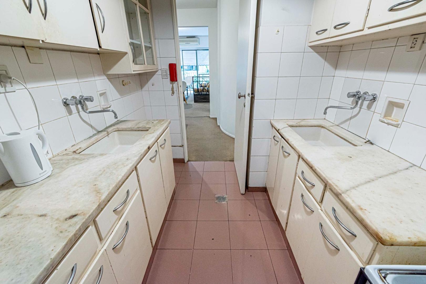 El departamento se modificó incorporando la ante-cocina y transformándola en comedor anexada al Living y se cerró el acceso a la habitación de servicio por el lavadero, abriendo el acceso por el pasillo de los dormitorios siendo actualmente un escritorio o tercer dormitorio con un gran placard y un segundo baño con ducha. Las medidas aproximadas de los ambientes son Living 6,10 x 3,20 Comedor 2,50 x 2 Dorm 3,80 x 3,20 con placard, 2° dorm 3x3 con placar, hab serv o tercer dorm 3x2. El edificio es de muy buena categoría, tiene encargado permanente, ayudante y vigilancia todos los días las 24 hs. Tiene servicios centrales de calefacción y agua caliente. El estado general del departamento es muy bueno. Su ubicación es estratégica, frente a Plaza Libertad, a 1 y1/2 cuadra de Av. Santa Fé y 2 cuadras de Av. 9 de Julio con Metrobus y varios medios de transporte. Es una zona con bares, restaurantes, supermercados etc.
