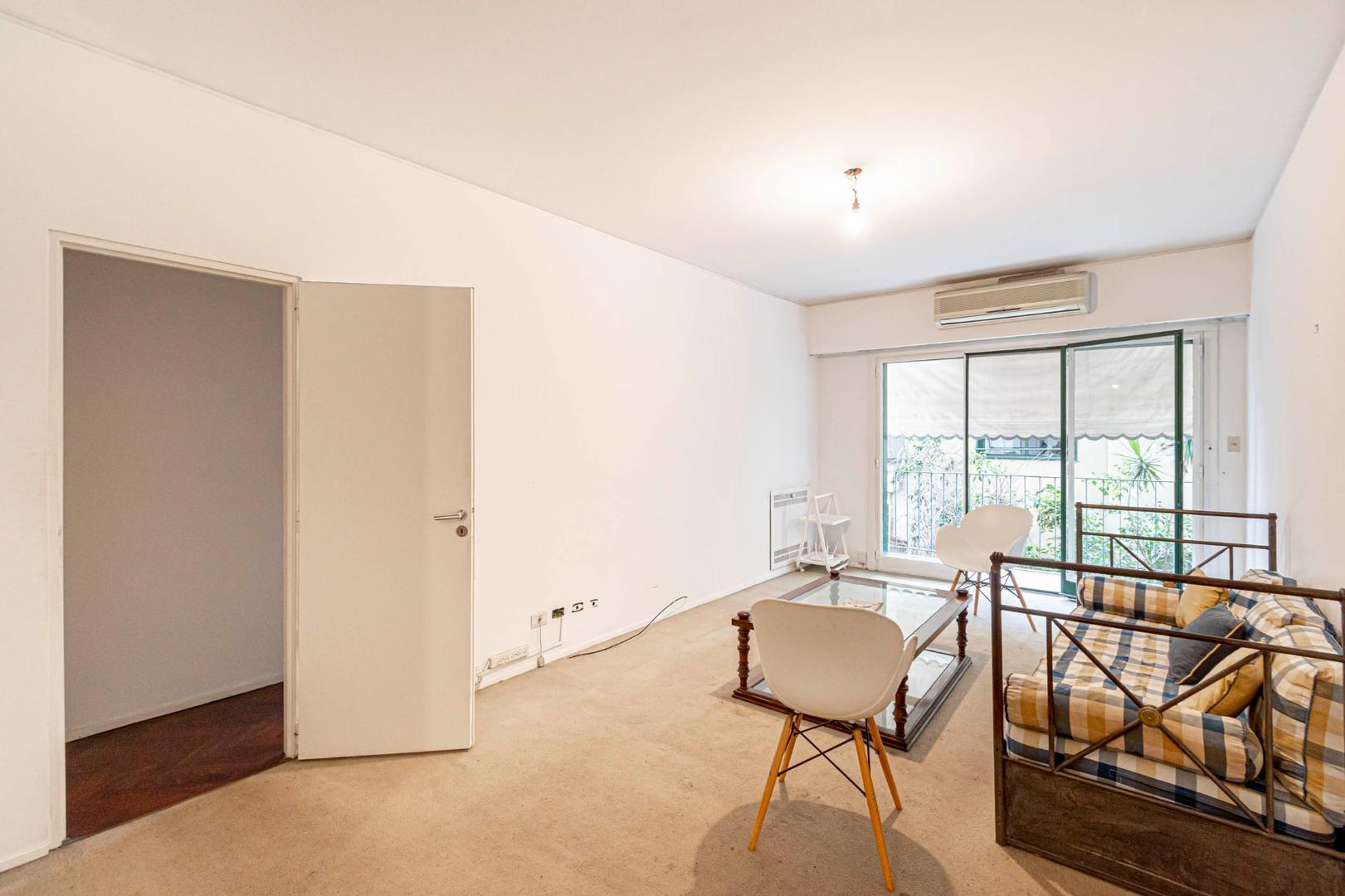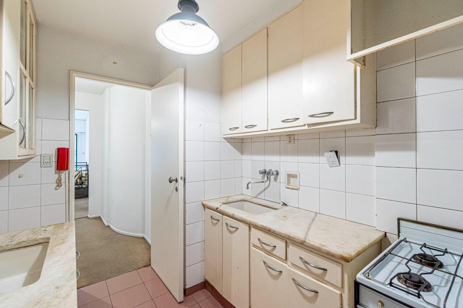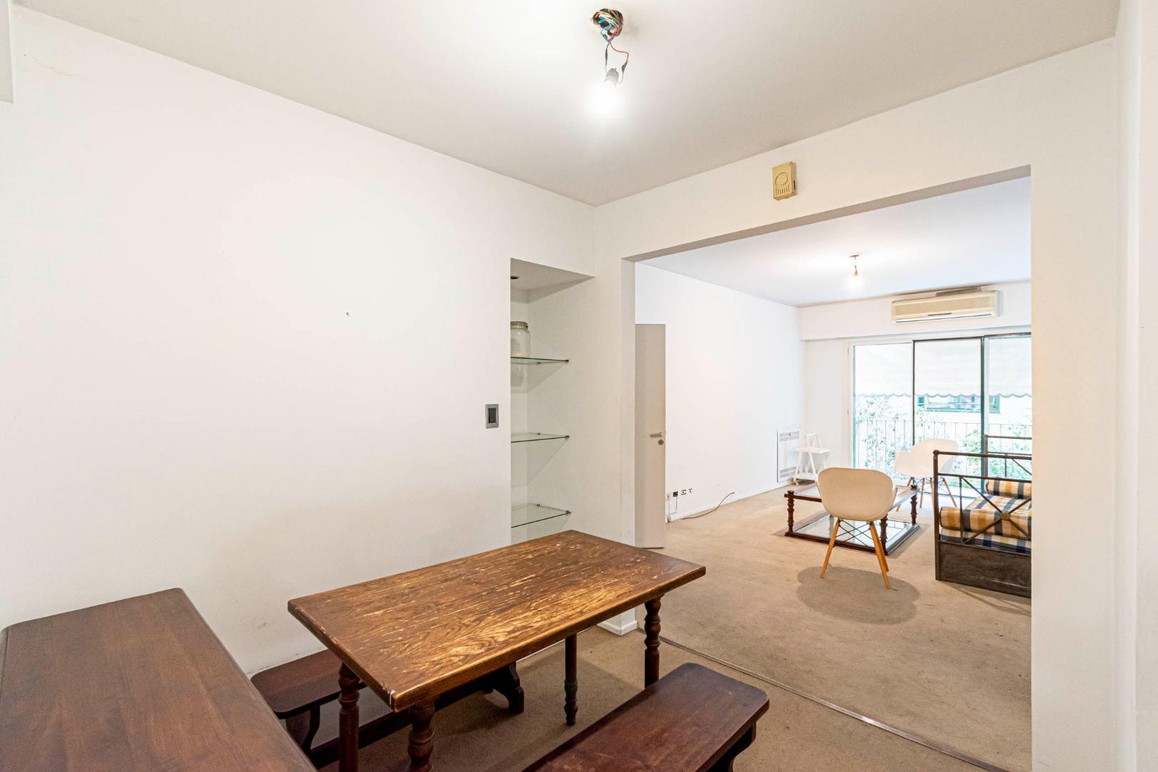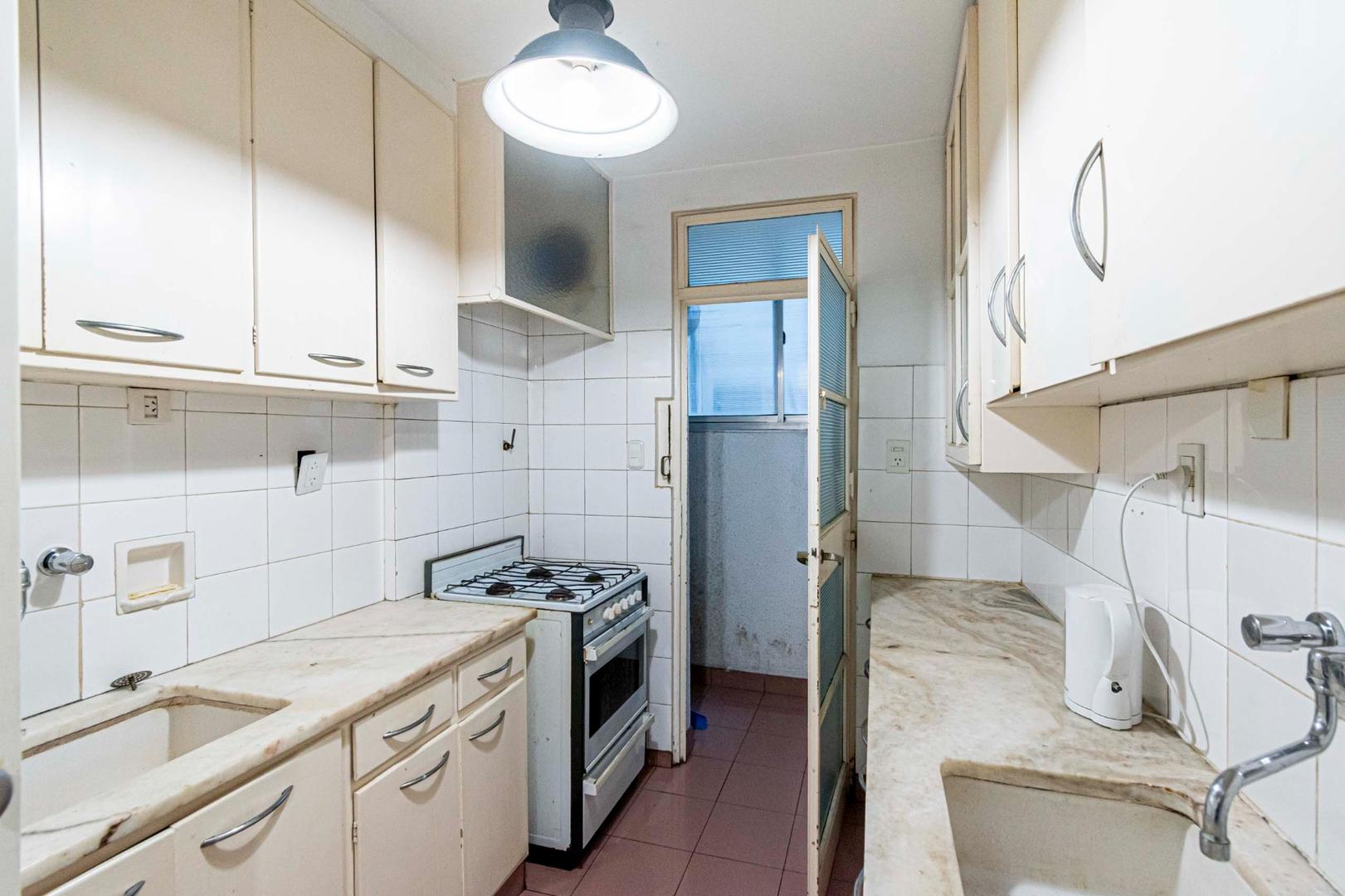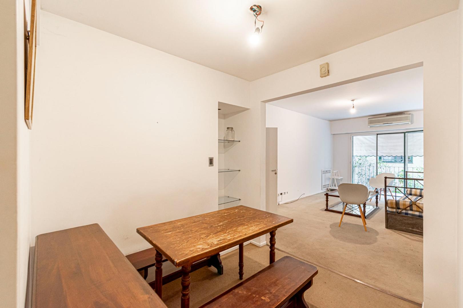 El departamento se modificó incorporando la ante-cocina y transformándola en comedor anexada al Living y se cerró el acceso a la habitación de servicio por el lavadero, abriendo el acceso por el pasillo de los dormitorios siendo actualmente un escritorio o tercer dormitorio con un gran placard y un segundo baño con ducha. Las medidas aproximadas de los ambientes son Living 6,10 x 3,20 Comedor 2,50 x 2 Dorm 3,80 x 3,20 con placard, 2° dorm 3x3 con placar, hab serv o tercer dorm 3x2. El edificio es de muy buena categoría, tiene encargado permanente, ayudante y vigilancia todos los días las 24 hs. Tiene servicios centrales de calefacción y agua caliente. El estado general del departamento es muy bueno. Su ubicación es estratégica, frente a Plaza Libertad, a 1 y1/2 cuadra de Av. Santa Fé y 2 cuadras de Av. 9 de Julio con Metrobus y varios medios de transporte. Es una zona con bares, restaurantes, supermercados etc.